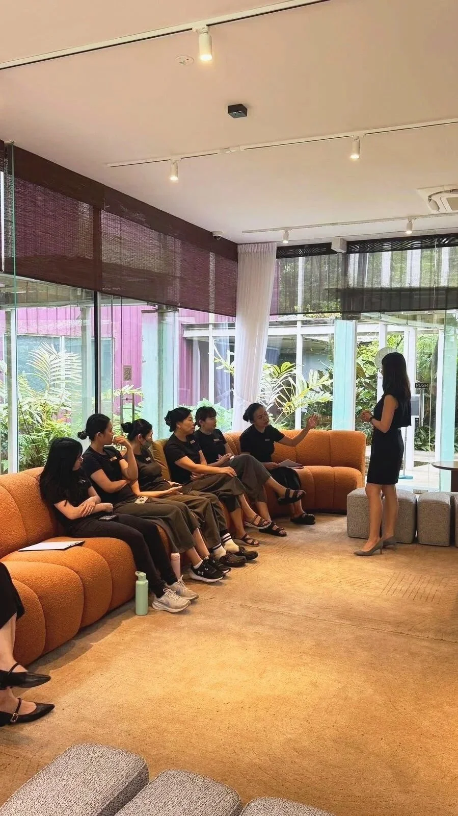 Bathed in soft light and greenery, this intimate space invites focus, calm, and mindful connection.